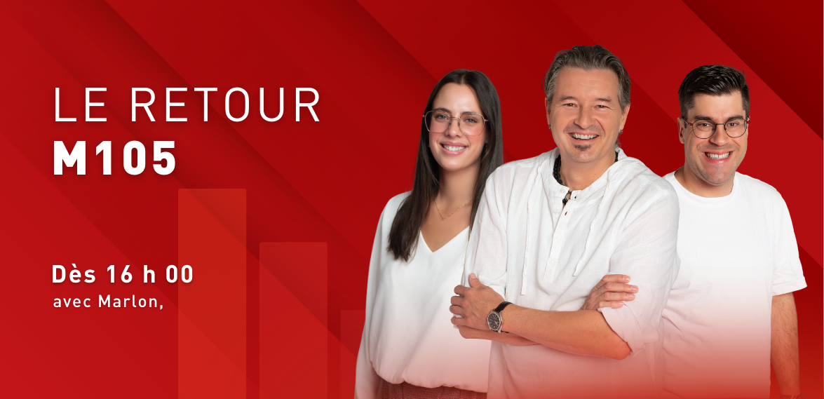 La journée se termine bien à M105 avec Le Retour M105. Marlon Desmeules, Lydia Bonin et Mathieu Majeau aux nouvelles vous raccompagnent à la maison du lundi au jeudi entre 16h et 18h pour un retour à la maison en musique et en actualités. À 16h, on plonge dans nos souvenirs musicaux avec les classiques incontournables.